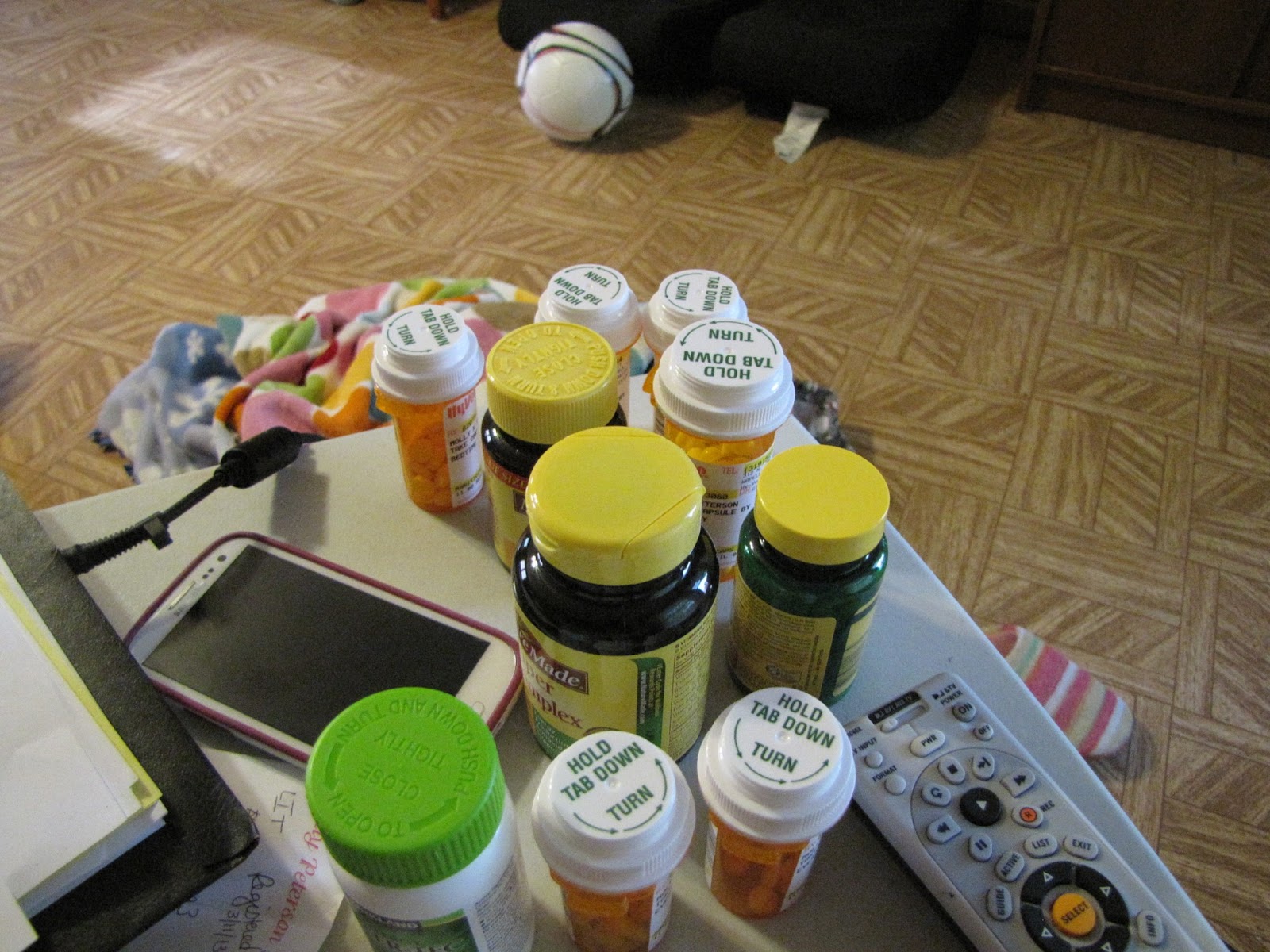 The pill bottles - minus the daily vitamin and the calcium bottles - they are huge! |